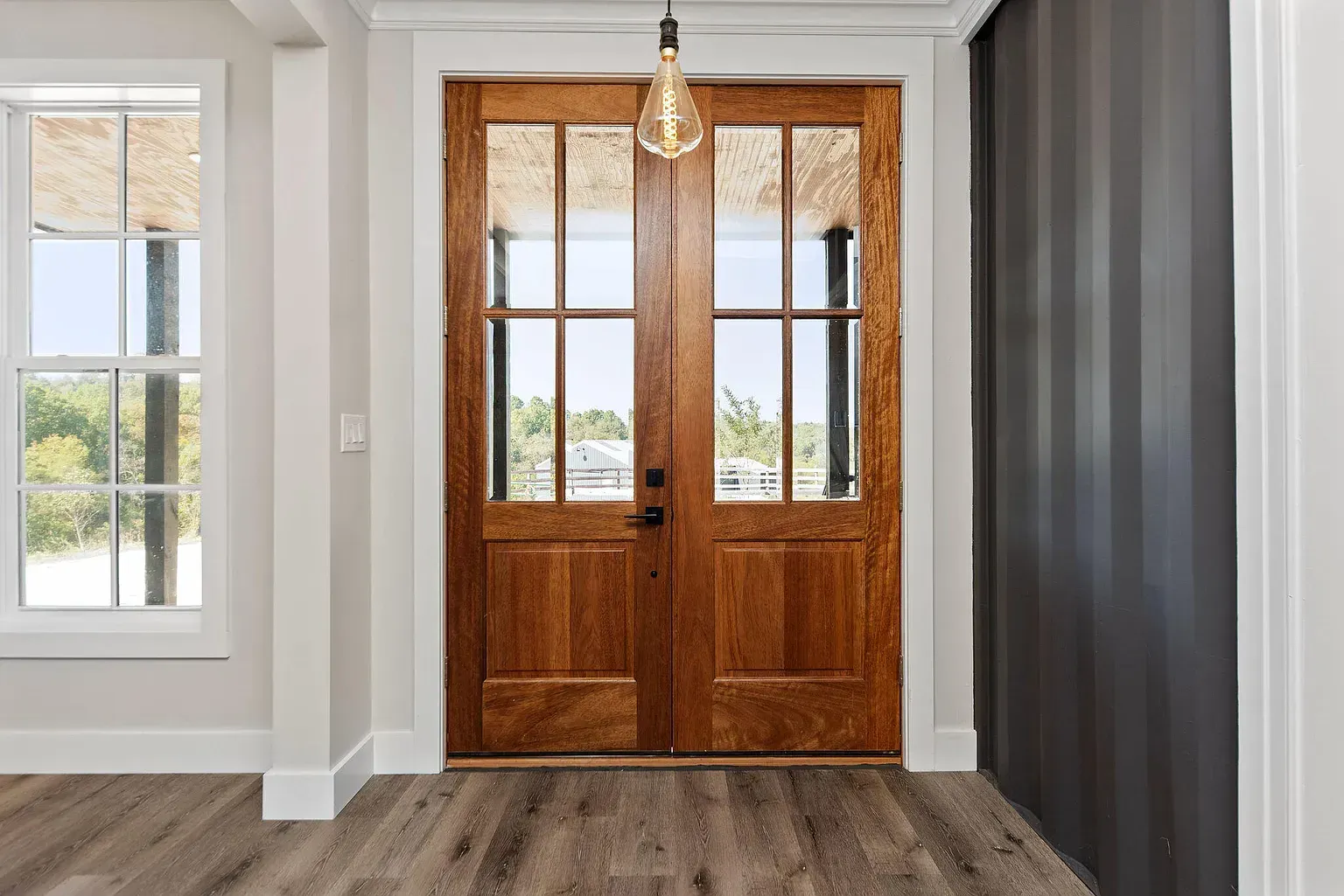 4 Pane frames in doors and windows give that lovely modern rustic farmhouse look. This is the interior of the Snag Creek Barndo. in Foster, Kentucky.